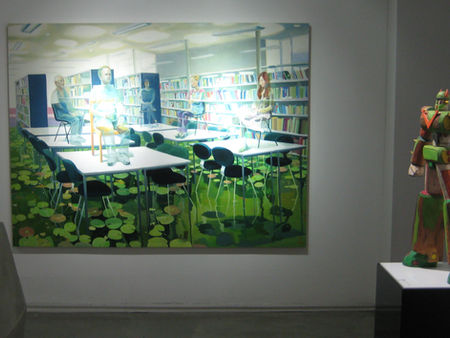윤상윤 작가의 회화는 평화로운 풍경화처럼 보이지만, 작품을 들여다보면 내용은 물과 사슴, 백조 등이 등장하여 인생의 3단 구조를 은유적으로 나타내는 철학적인 작품들이다. 우리가 일상에서 흔히 보고 경험 할 수 있을 법한 풍경들을 독특한 구조에 화려한 색감을 입힌 그의 작품은 보는 이의 눈길을 끈다.